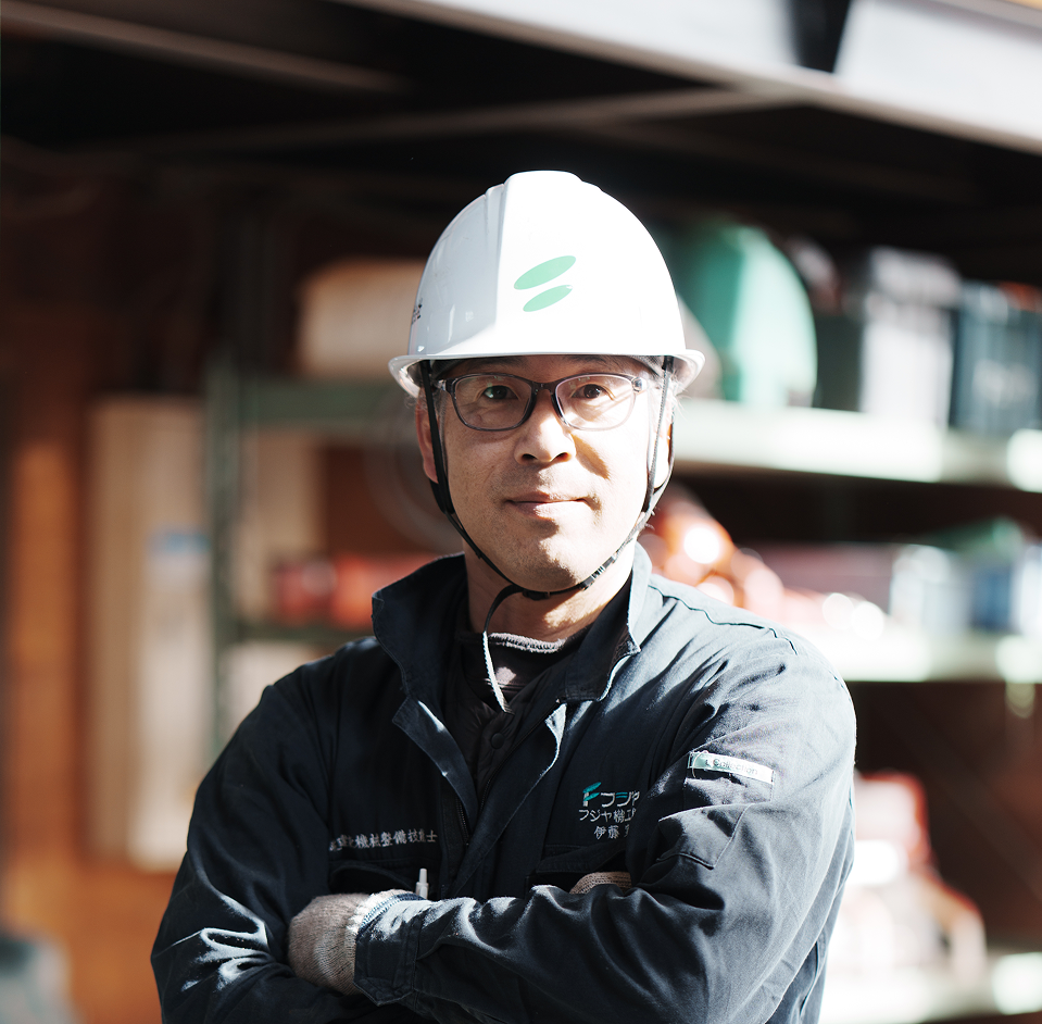 もともとはバイクをいじることが趣味で、こうした整備の仕事があることを知り、整備士を志しました。 諏訪市で生まれ育ち、地元で働きたいという思いは以前からありました。 建設業界で2〜3社の経験を積んだ後、求人紹介を通じてフジヤ機工を知り、これまでの経験を活かせると感じて応募しました。